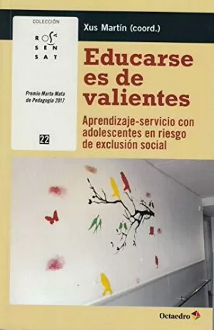 Educarse es de valientes habla de adolescentes que para curar las heridas de la exclusión social activan su capacidad de dar y se implican en la mejora del bien común mediante actividades de aprendizaje servicio. Acostumbrados a ser receptores de ayudas sociales. el cambio de rol ser ellos quienes dan. quienes aportan y quienes obsequian los desubica y los sitúa ante nuevos retos. Mientras ayudan a colectivos de su comunidad. en su entorno. pero también en su interior. ocurren muchas cosas. Educarse es de valientes quiere mostrar como la educación puede contribuir a dar un giro en la vida de unos adolescentes que se creen abocados al fracaso. Las autoras del libro forman parte del grupo Pedagogía del don y jóvenes en riesgo de exclusión. coordinado por Xus Martín. profesora de la facultad de Educación de la Universidad de Barcelona y miembro del GREM (Grupo de Investigación en Educación Moral). que ha orientado su actividad de investigación a la educación en valores. el aprendizaje servicio y los adolescentes vulnerables. El objetivo del grupo. creado en 2015. es favorecer experiencias de aprendizaje servicio en entidades socioeducativas que trabajan con chicos y chicas víctimas del fracaso escolar y valorar el impacto formativo de esta metodología en los jóvenes.
